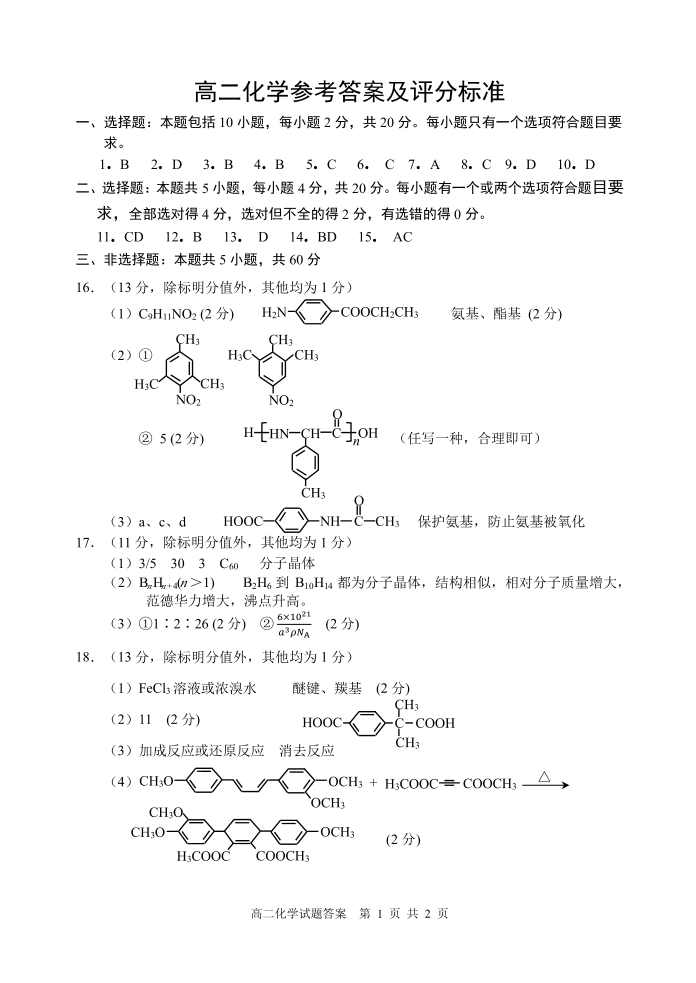 山东省威海市2024届下学期期末考试化学答案