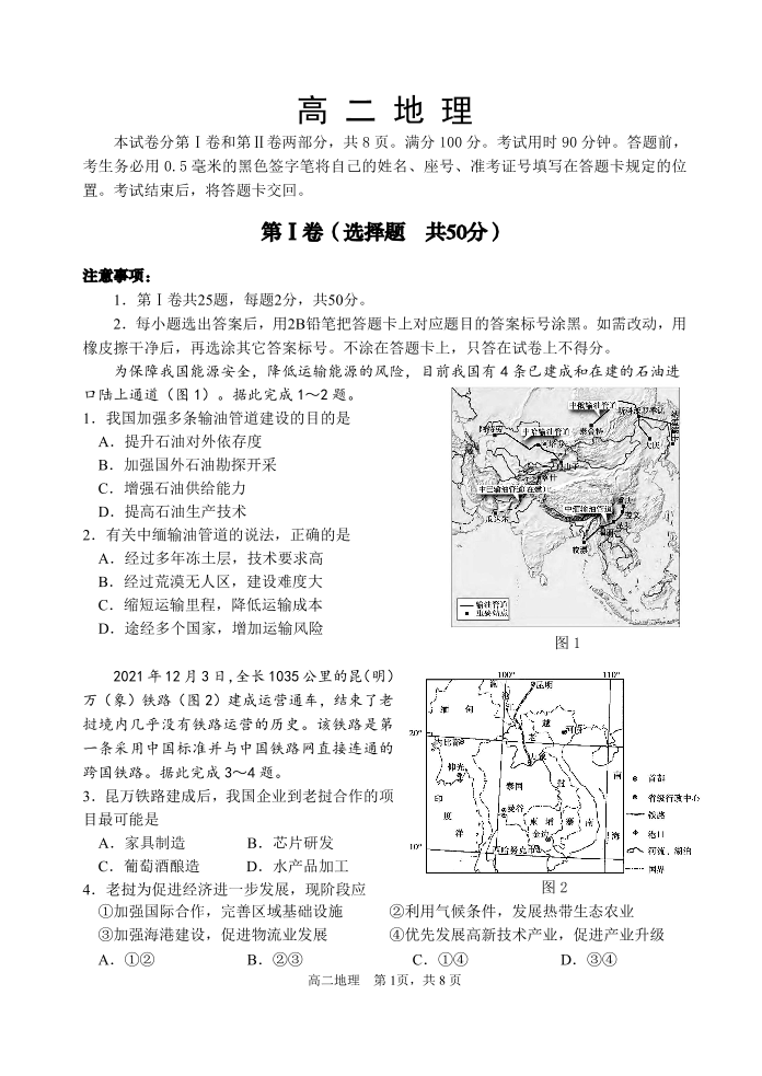 山东省威海市2024届下学期期末考试地理