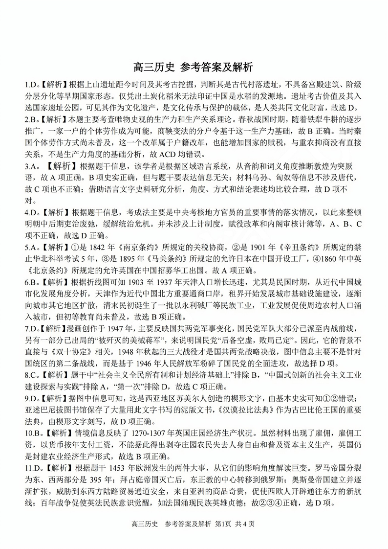 浙江省七彩阳光新高考研究联盟2024届高三上学期返校联考历史答案