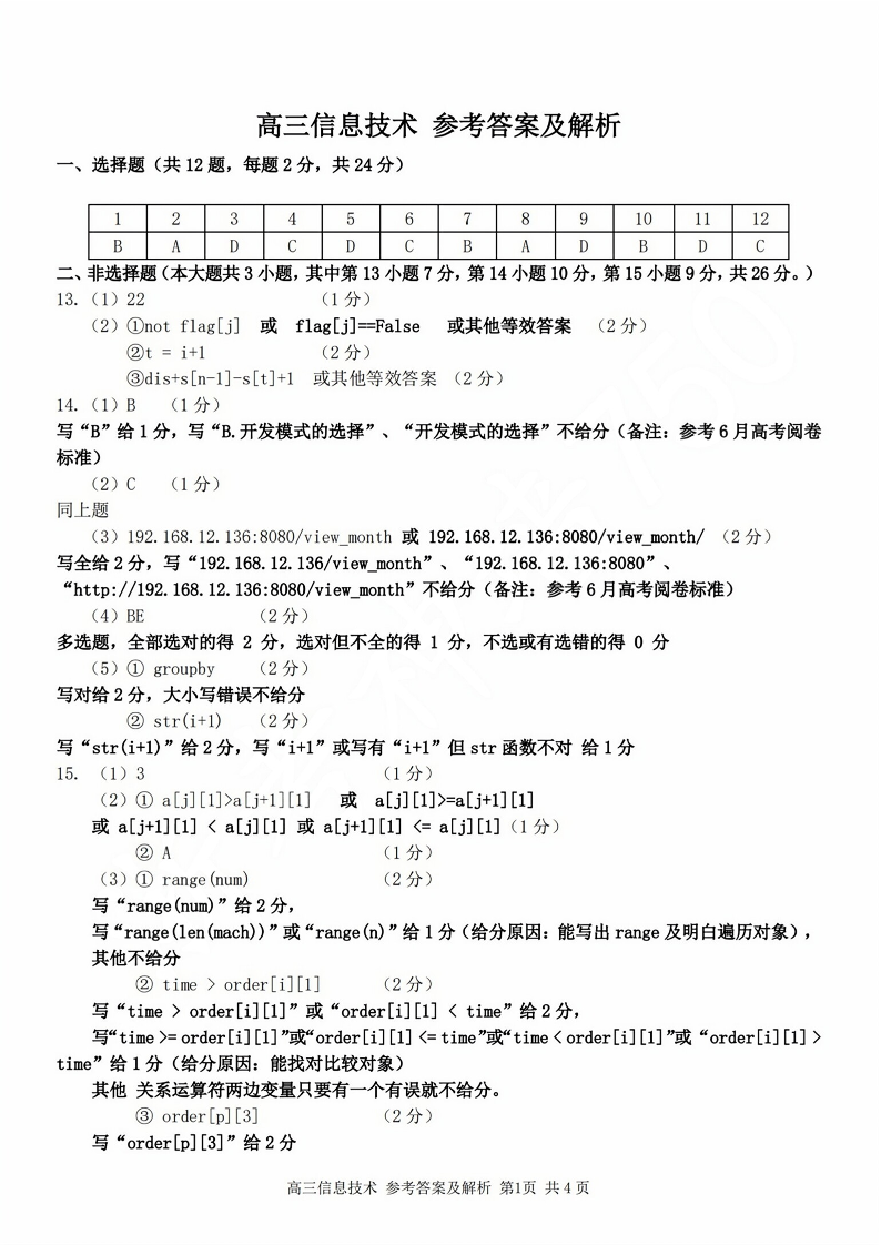 浙江省七彩阳光新高考研究联盟2024届高三上学期返校联考技术答案