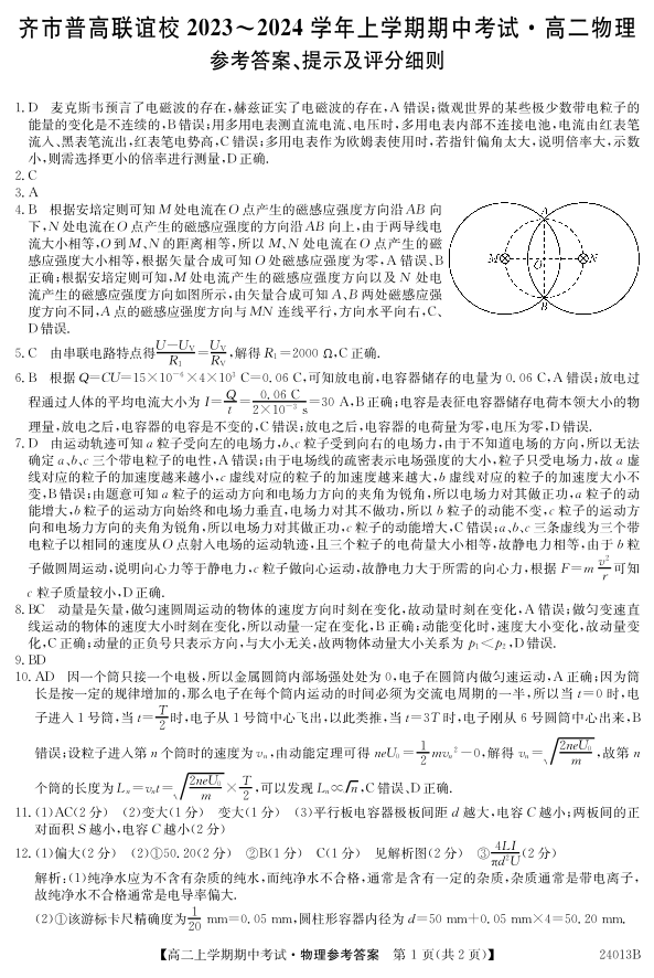黑龙江省齐齐哈尔市普高联谊校2024届高三上学期期中考试物理答案