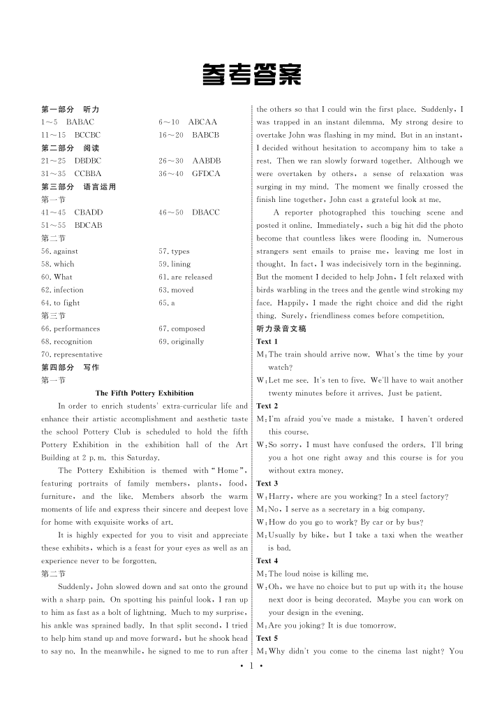 河北省衡中同卷2024届高三上学期11月期中英语答案