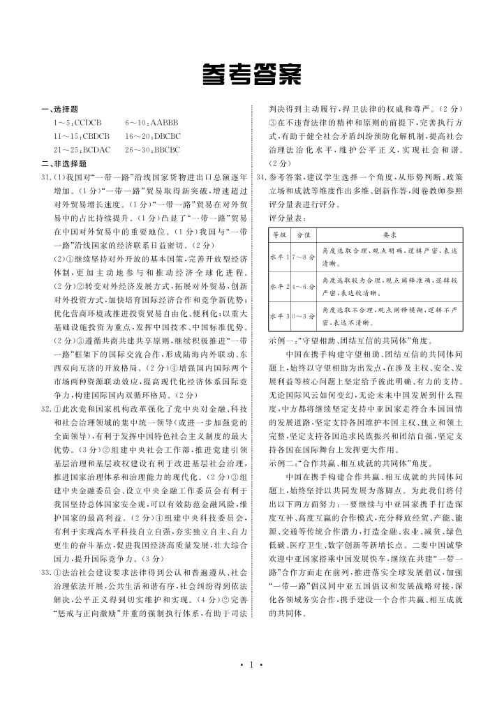 河北省衡中同卷2024届高三上学期11月期中政治答案