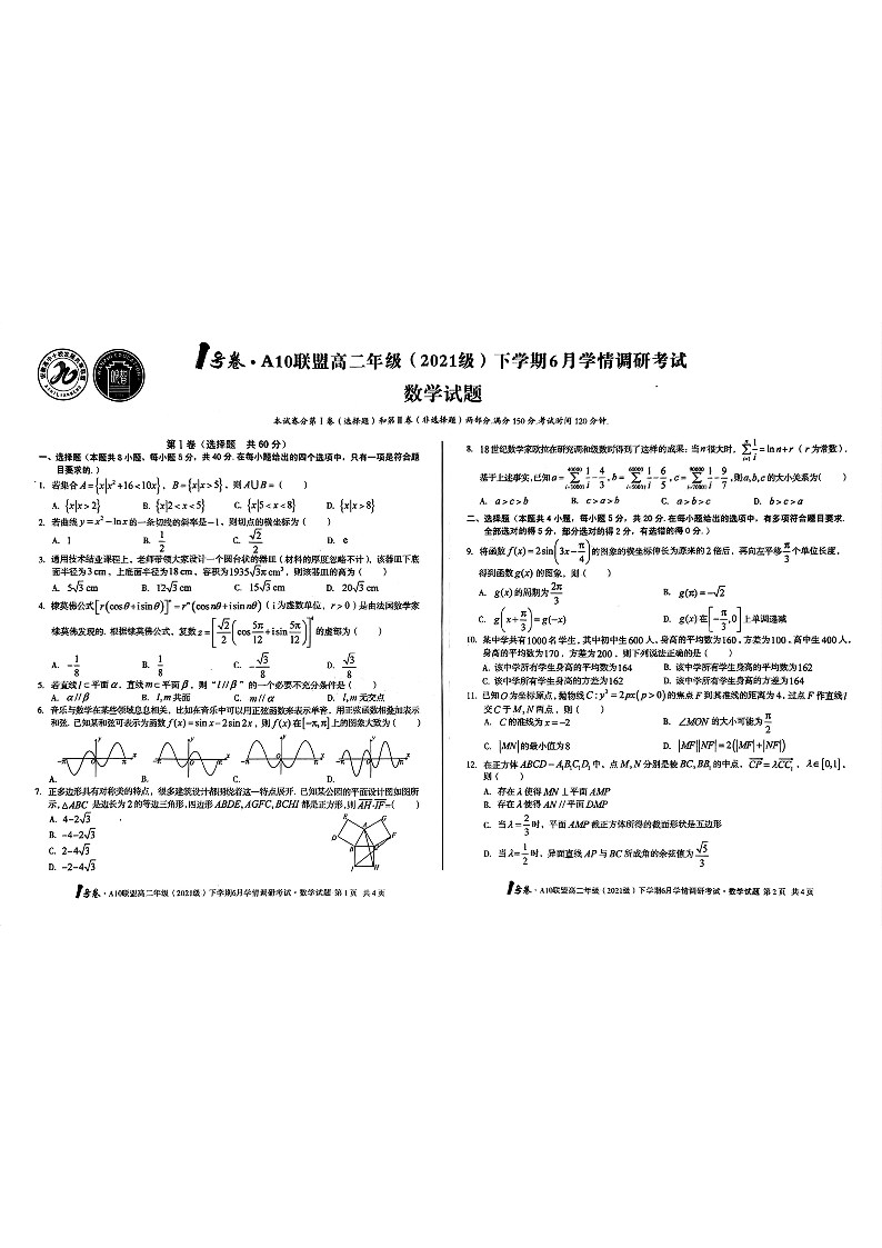 安徽省A10联盟2024届下学期6月学情调研考试数学