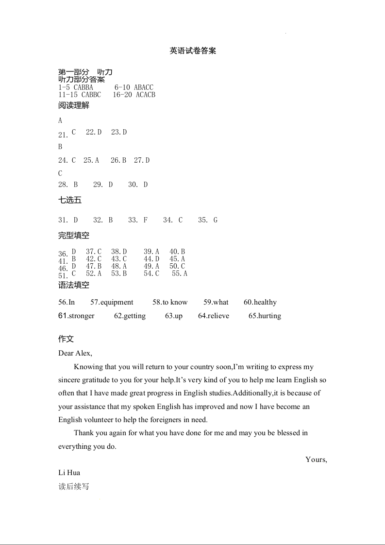 甘肃省武威市凉州区2024届高三上学期第一次诊断考试英语答案