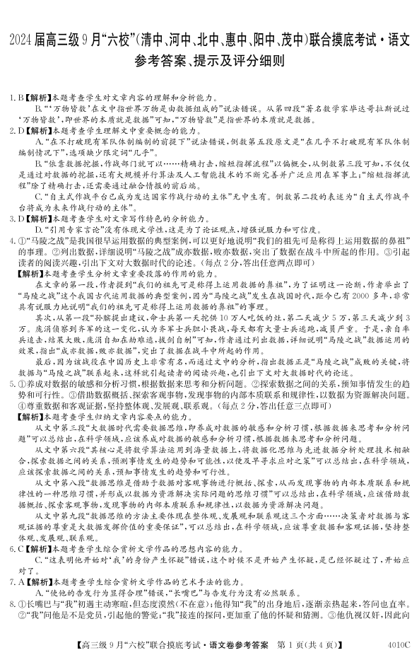 广东省六校(清中、河中、北中、惠中、阳中、茂中)2024届高三9月联考语文答案