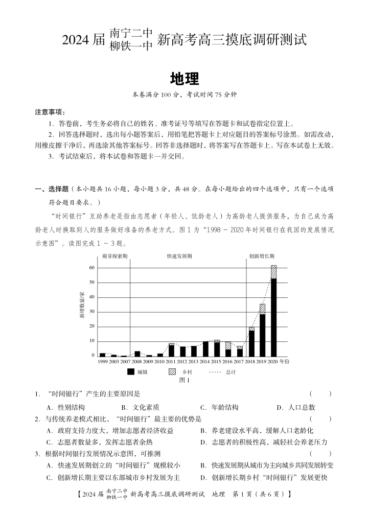 广西省南宁二中柳铁一中2024届新高考高三摸底考试地理
