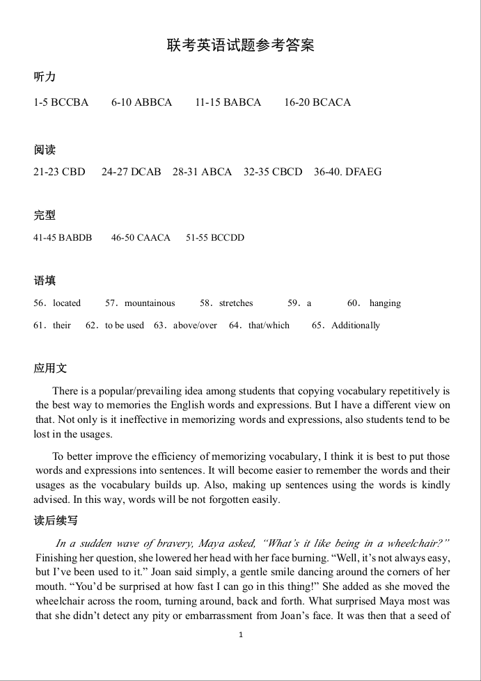 广西省南宁三中柳州高中2024届第一次适应性考试英语答案