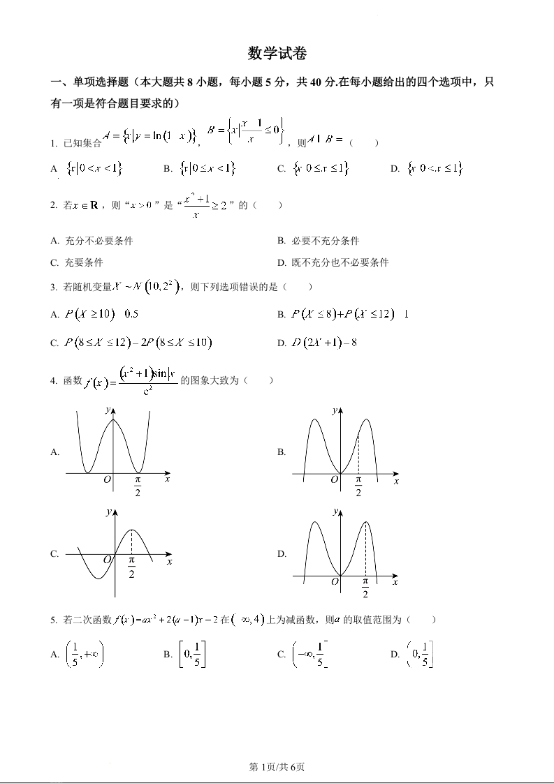 贵州省贵阳市第一中学2024届高考适应性月考(一)数学(原卷版)