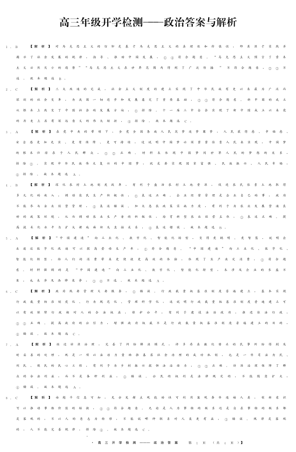 河北省秦皇岛市2024届高三年级开学检测政治答案