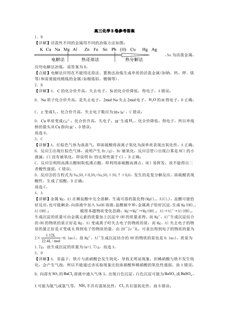 山西省运城市景胜学校(东校区)2024届高三上学期10月月考(B)卷化学答案