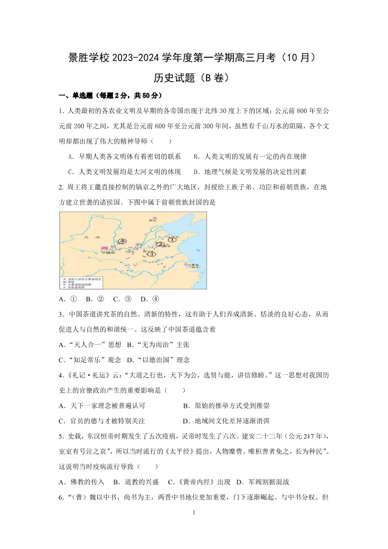 山西省运城市景胜学校(东校区)2024届高三上学期10月月考(B)卷历史