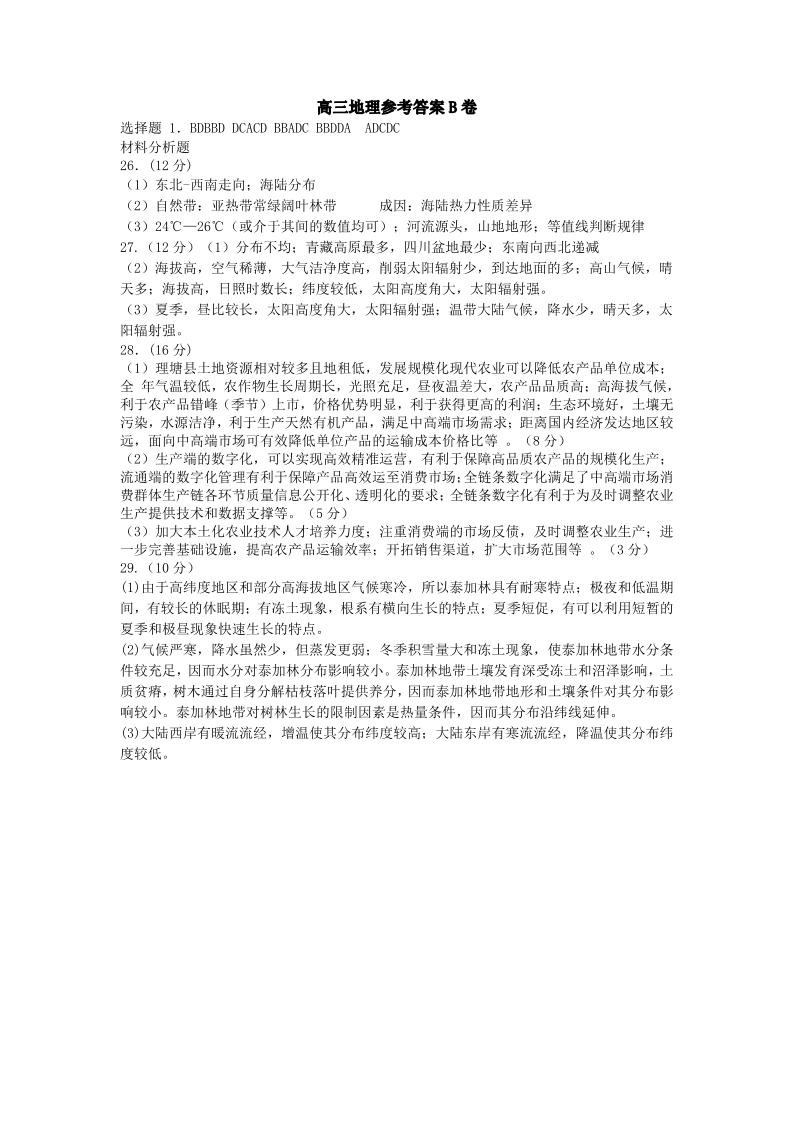 山西省运城市景胜学校(东校区)2024届高三上学期10月月考(B)卷地理答案