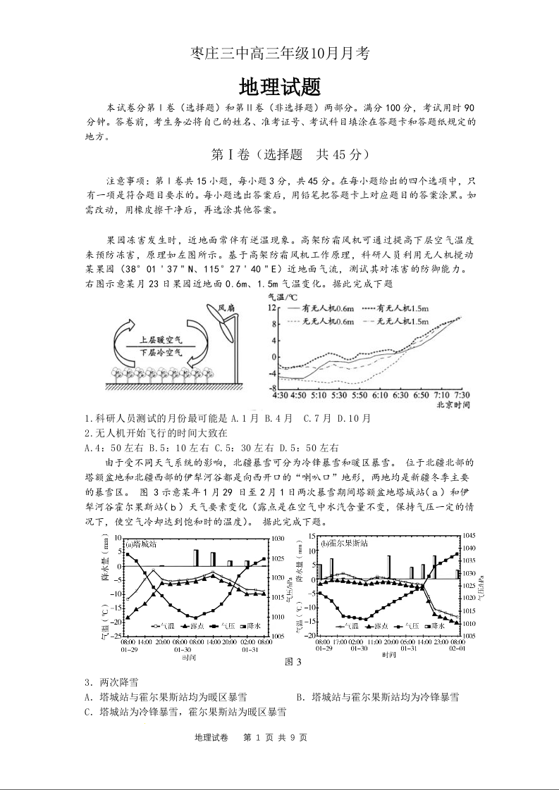山东省枣庄市第三中学2024届高三上学期10月月考地理+答案