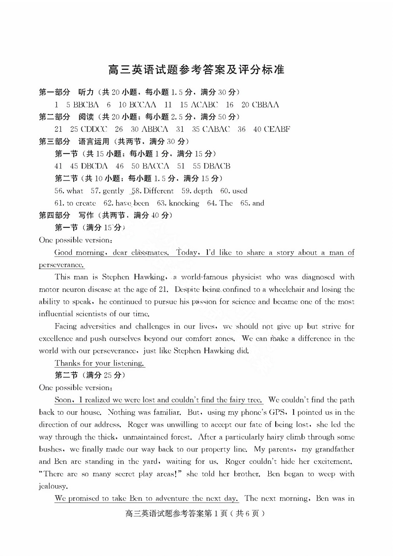 山东省潍坊市2024届高三上学期10月过程性检测英语答案