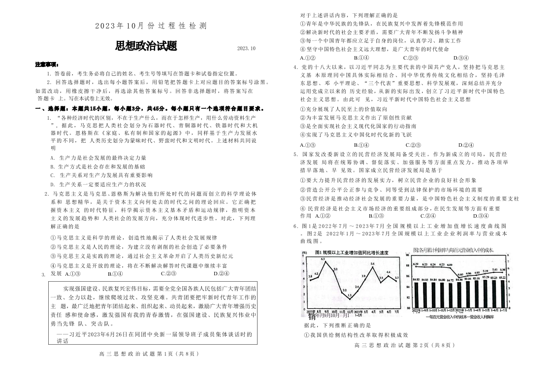 山东省潍坊市2024届高三上学期10月过程性检测政治