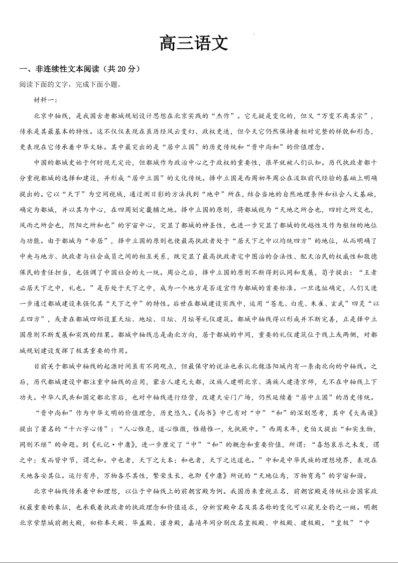 吉林省通化市梅河口市第五中学2024届高三上学期9月月考语文