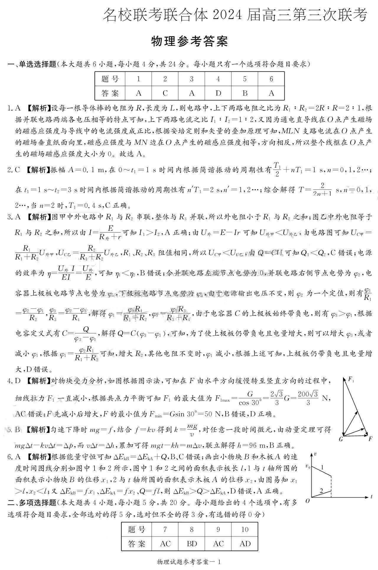 湖南炎德英才大联考名校联考联合体2024届高三第三次联考物理答案