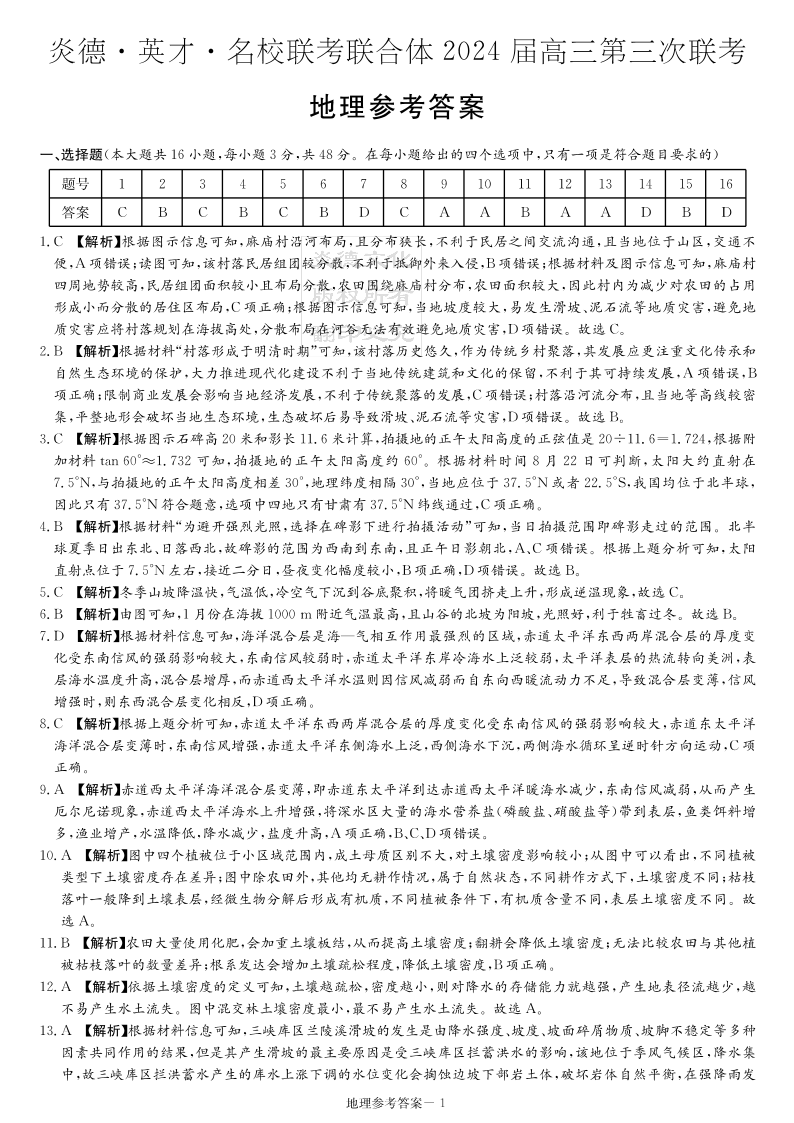 湖南炎德英才大联考名校联考联合体2024届高三第三次联考地理答案
