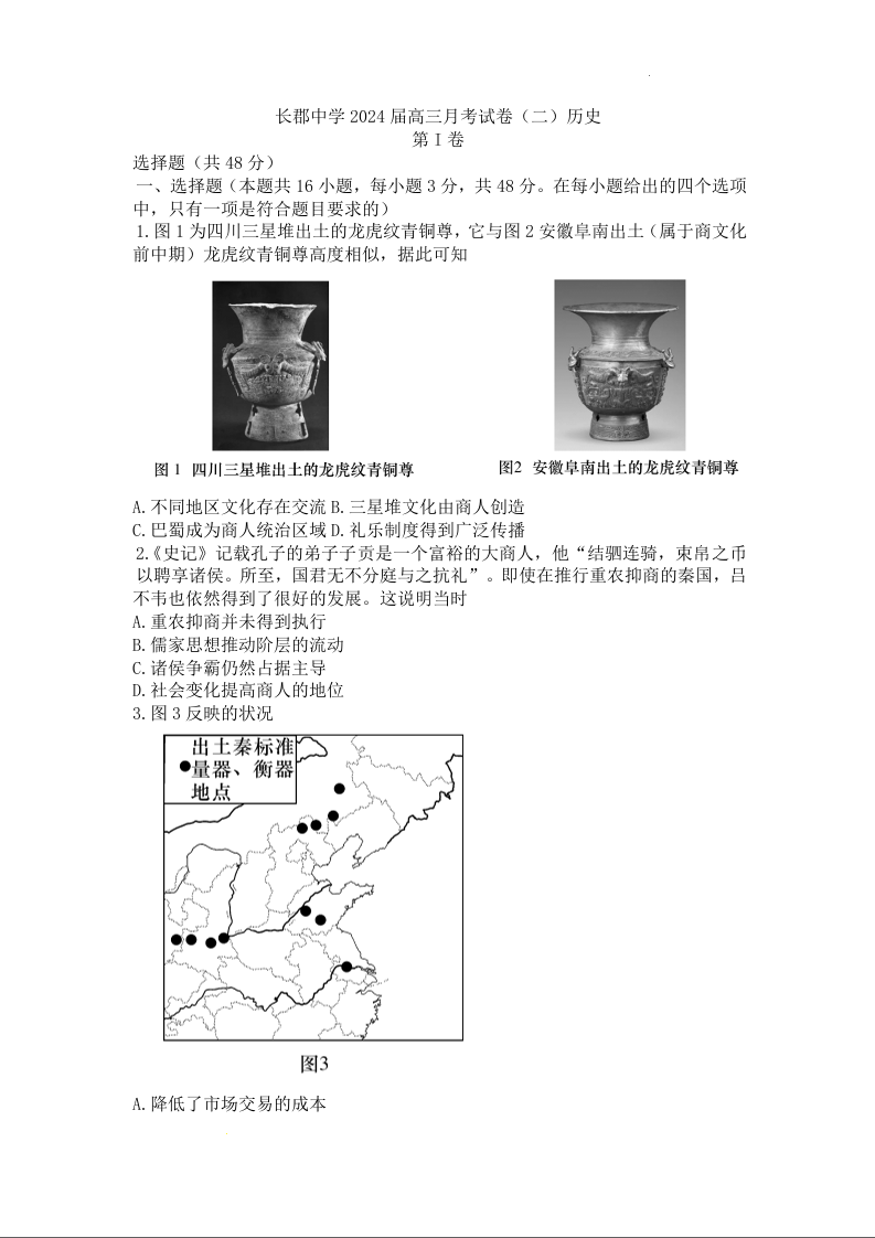 湖南省长沙市长郡中学2024届高三上学期月考卷(二)历史