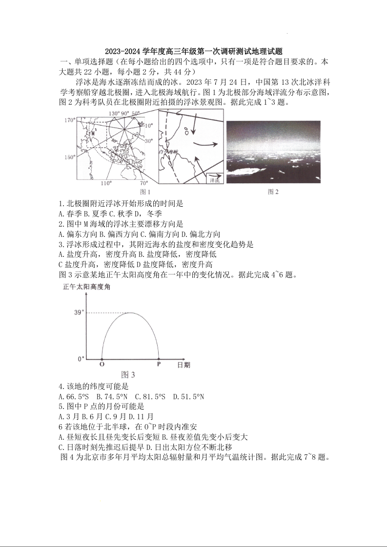 江苏省淮安市2024届高三上学期开学调研测试地理