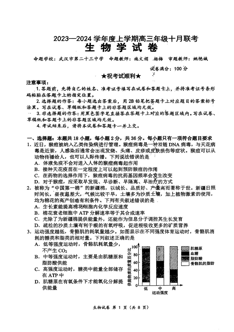 湖北省腾云联盟2024届上学期高三年级十月联考生物
