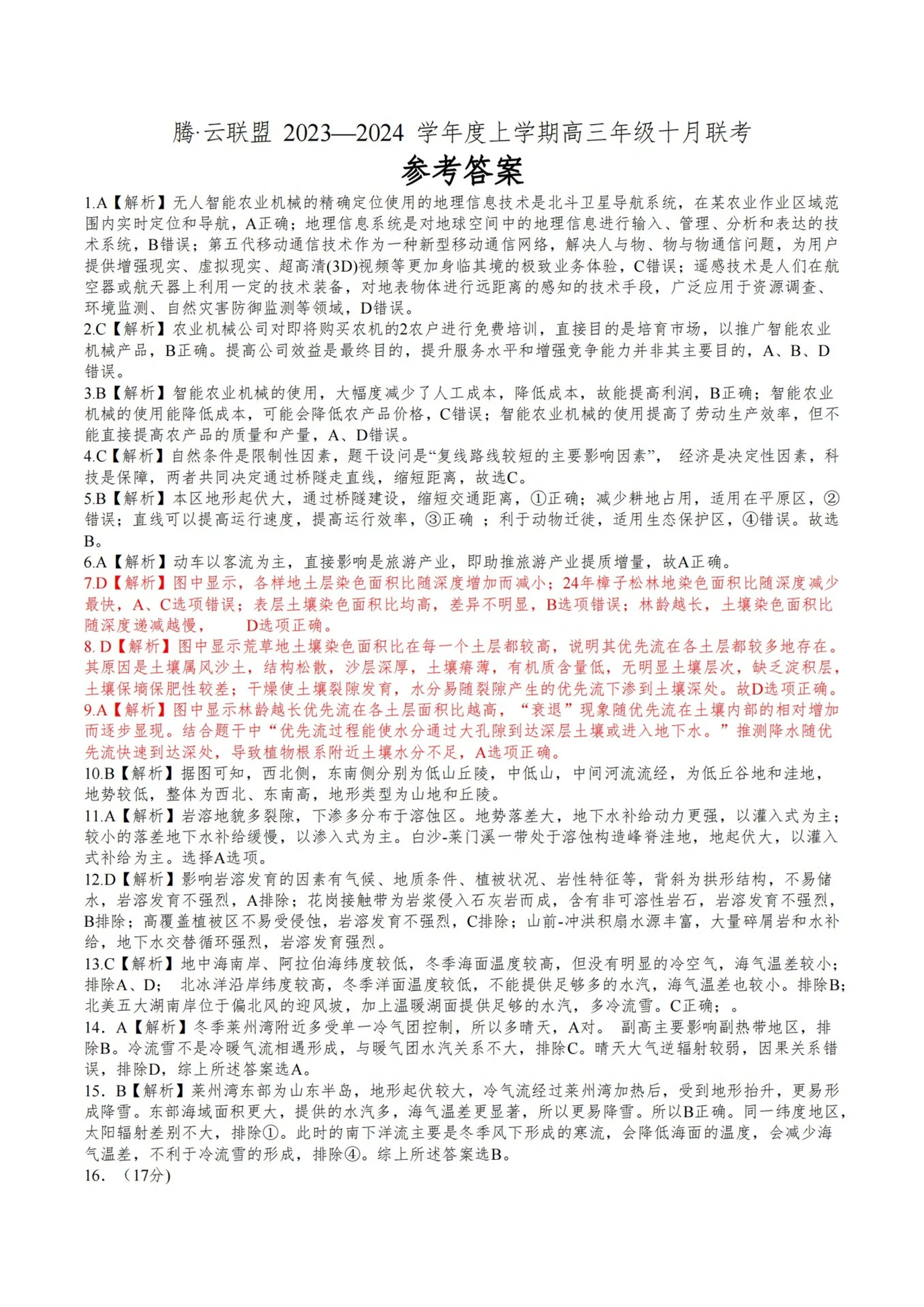 湖北省腾云联盟2024届上学期高三年级十月联考地理答案