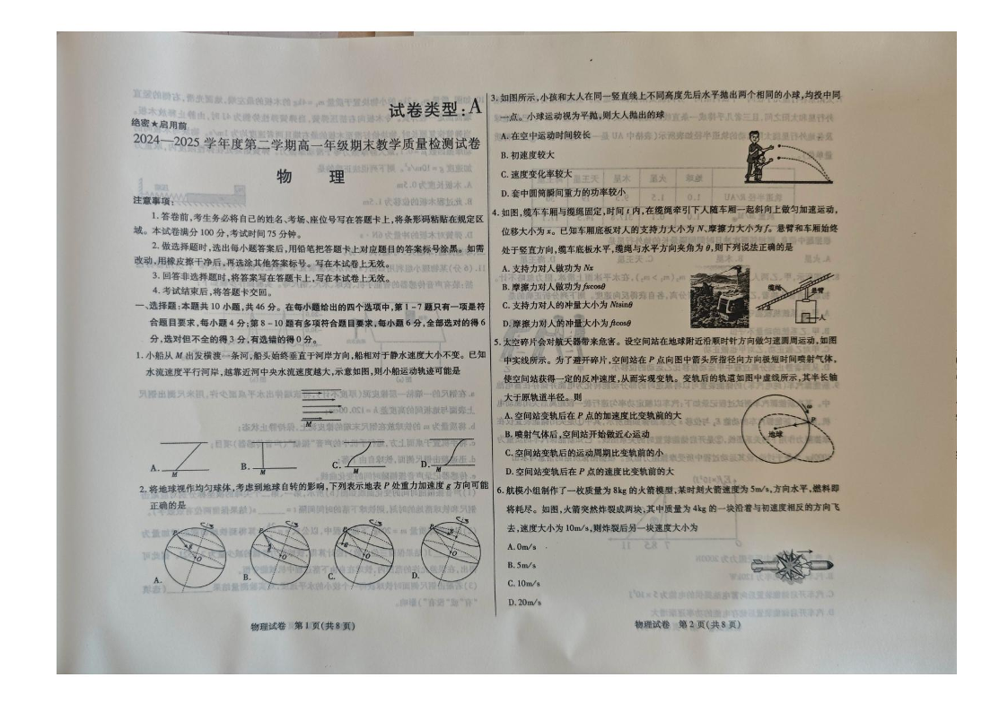高一物理+答案--内蒙古自治区包头市2024-2025学年高一下学期期末教学质量检测试卷