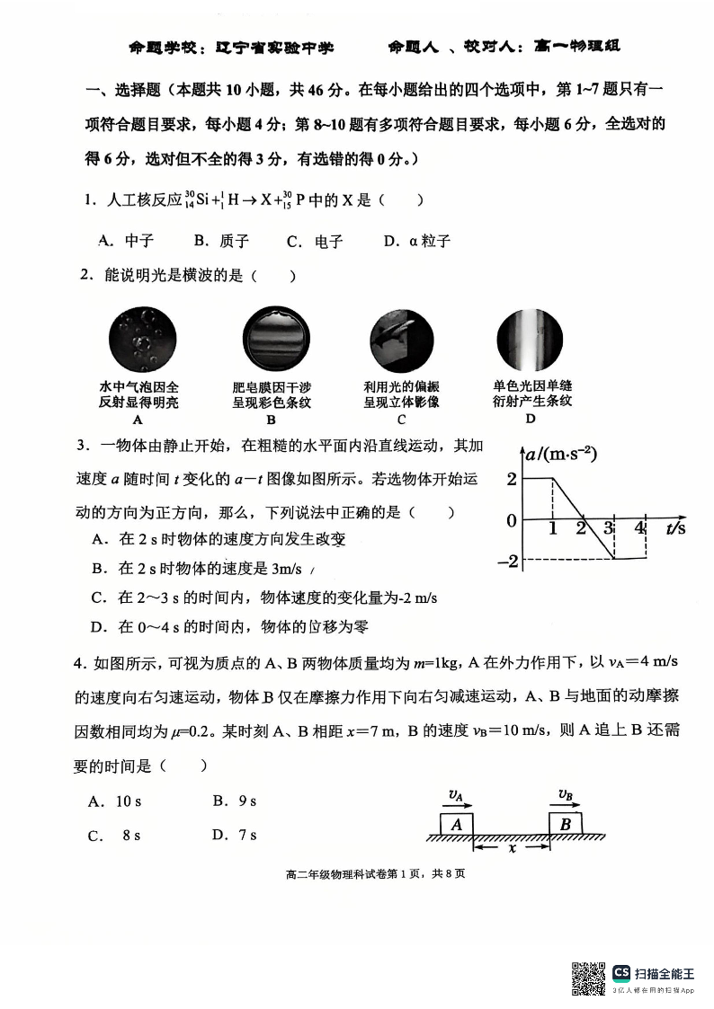 高二物理+答案--辽宁省五校联考2024-2025学年高二下学期7月期末考试