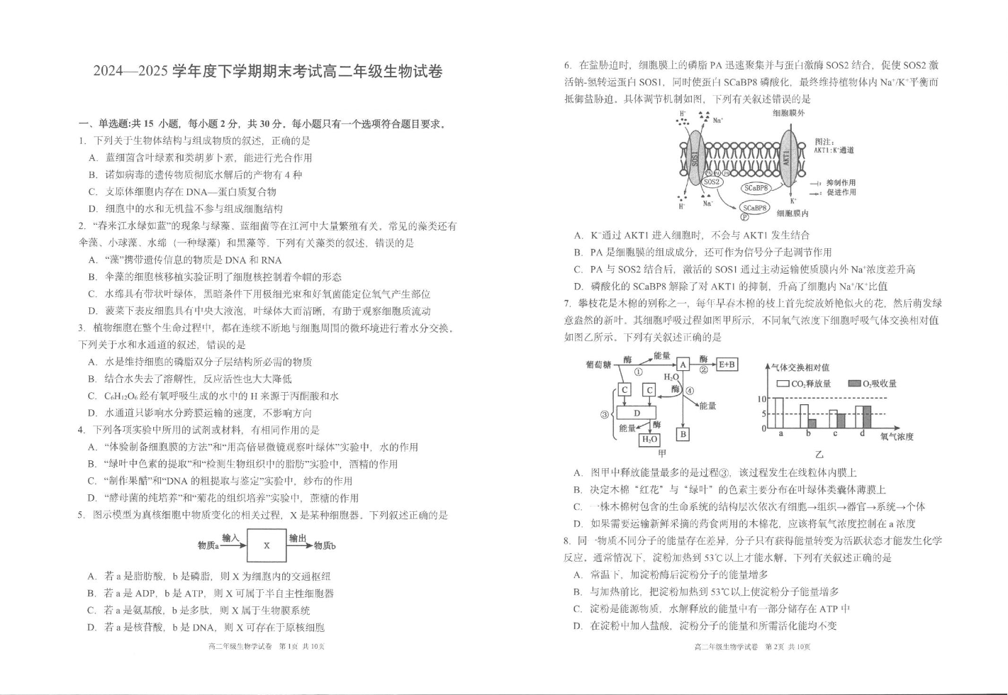 高二生物+答案--辽宁省五校联考2024-2025学年高二下学期7月期末考试