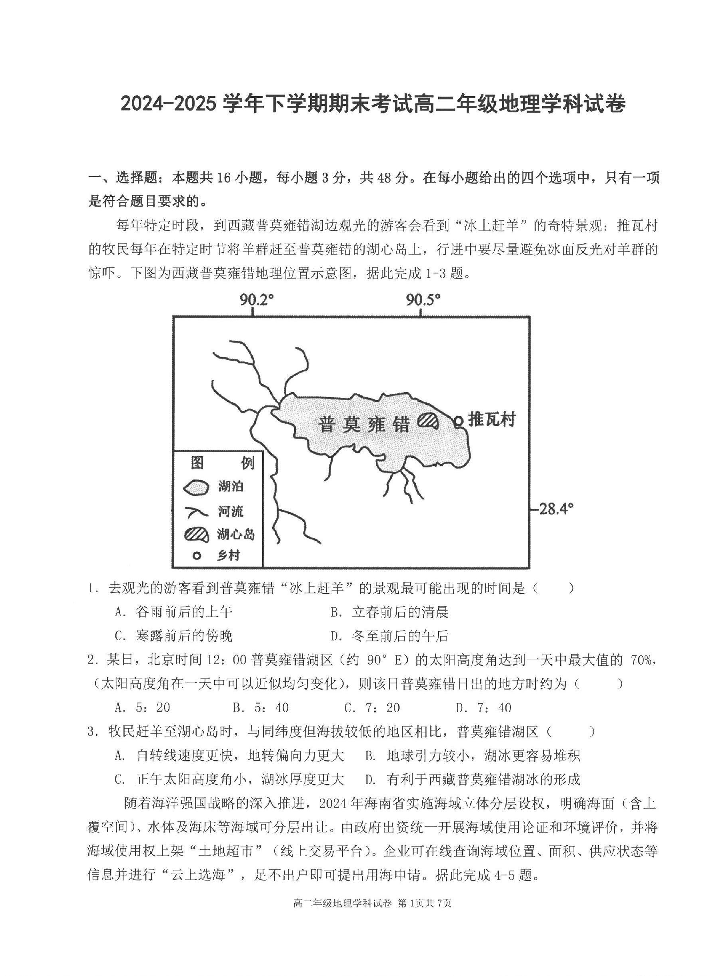 高二地理+答案--辽宁省五校联考2024-2025学年高二下学期7月期末考试