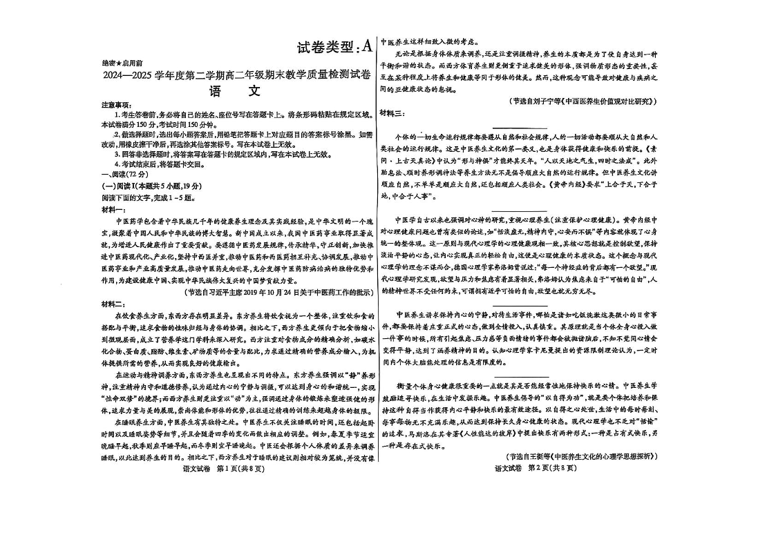 高二语文+答案--内蒙古自治区包头市2024-2025学年高二下学期期末教学质量检测试卷