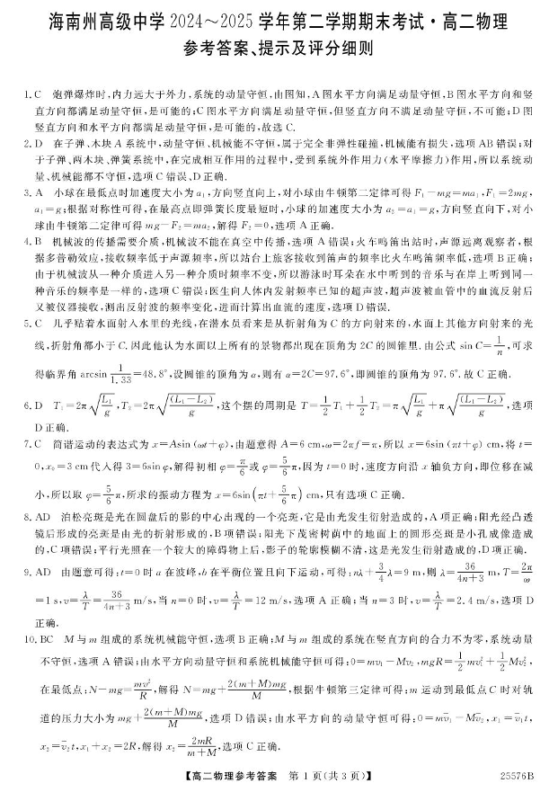 高二物理答案--青海省海南藏族自治州高级中学2024-2025学年高二下学期期末考试