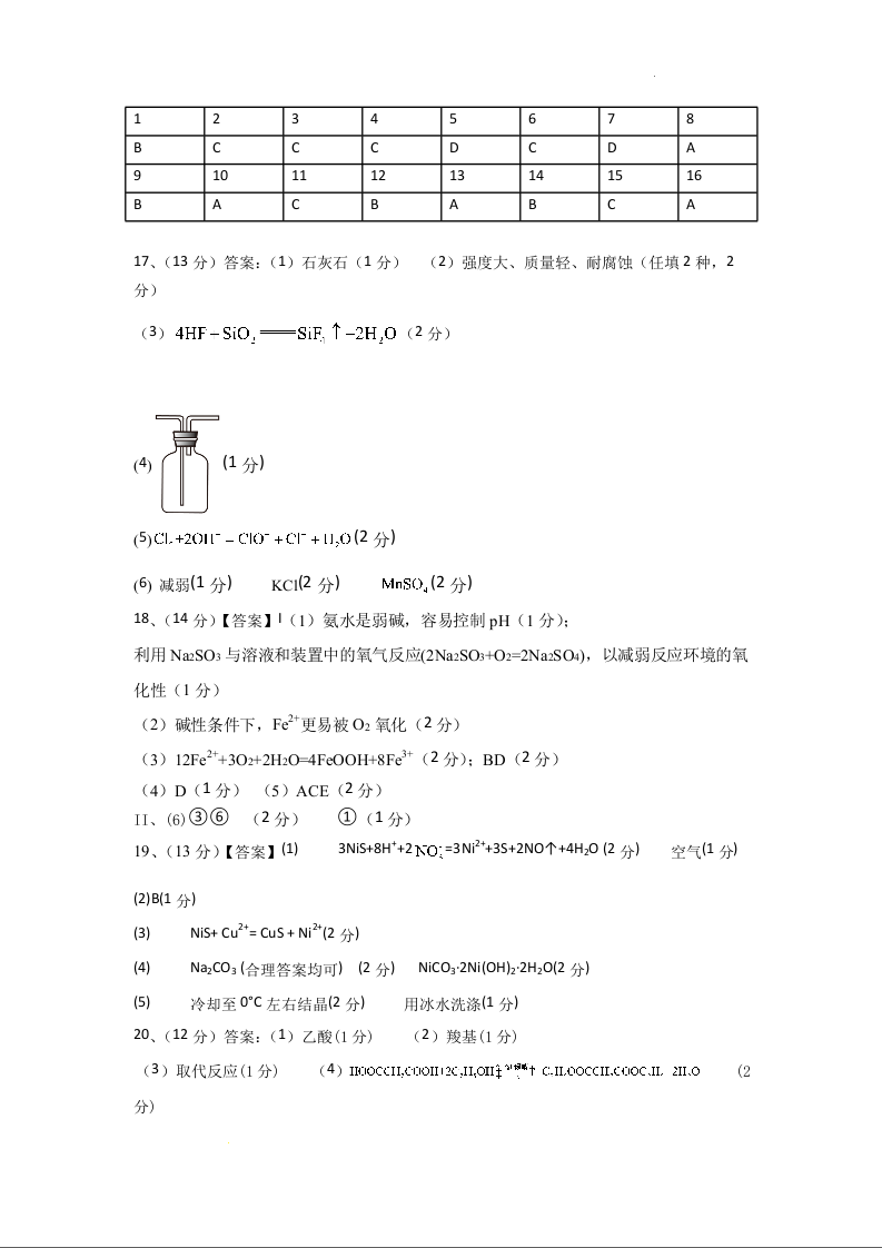 黑龙江省双鸭山市第一中学2024届高三上学期10月化学答案