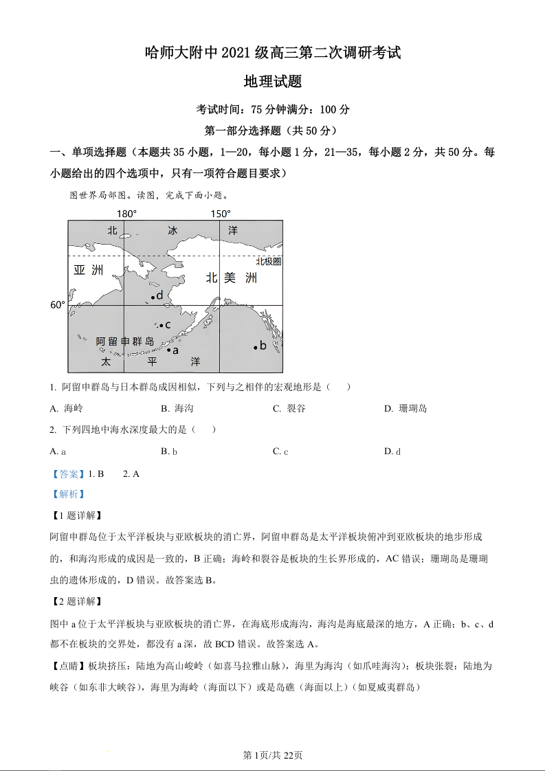 黑龙江省哈尔滨师范大学附属中学2024届高三上学期第二次调研考试地理(精品解析版)