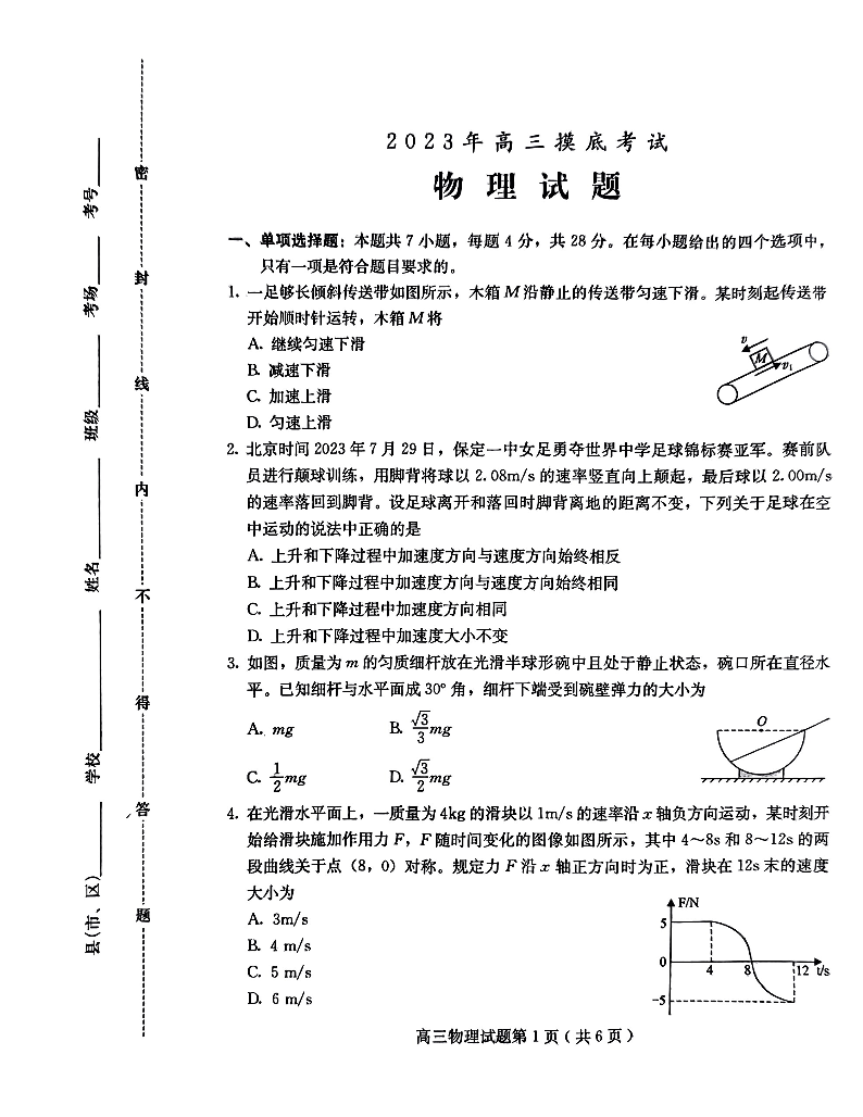 河北省保定市2024届高三上学期摸底考试(期中考试)物理