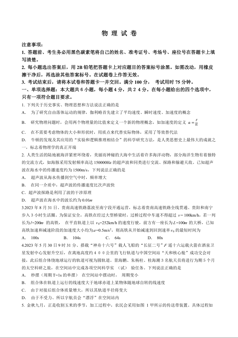 贵州省贵阳市第一中学2024届高三上学期高考适应性月考(二)物理+答案