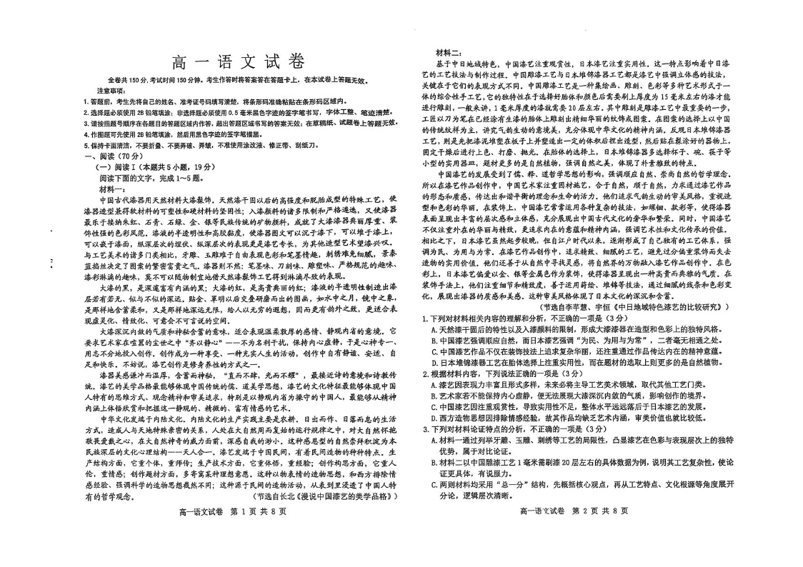 高一语文+答案--黑龙江省黑河市龙西北名校联盟2024-2025学年高一下学期7月期末考试