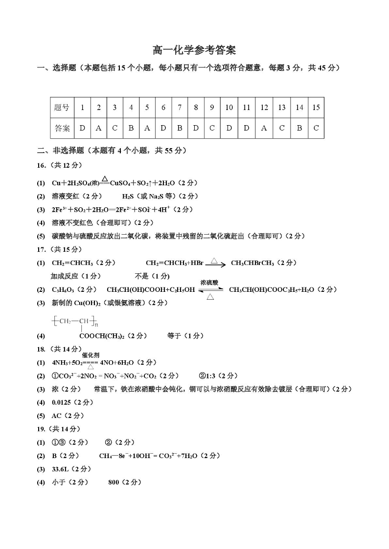 高一化学答案--黑龙江省黑河市龙西北名校联盟2024-2025学年高一下学期7月期末考试