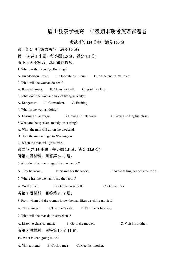 高一英语+答案--四川省眉山市县级学校2024-2025学年高一下学期期末联考