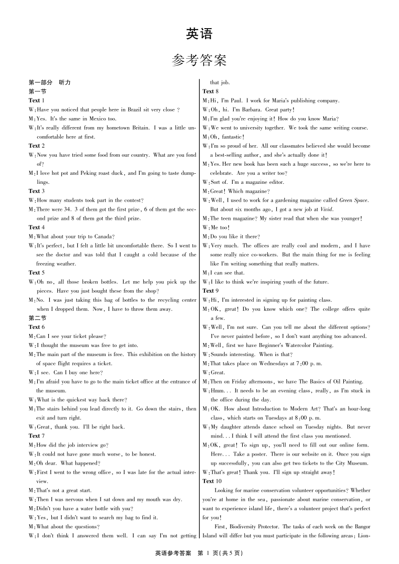 广西省2024届高中毕业班第一次摸底测试英语答案