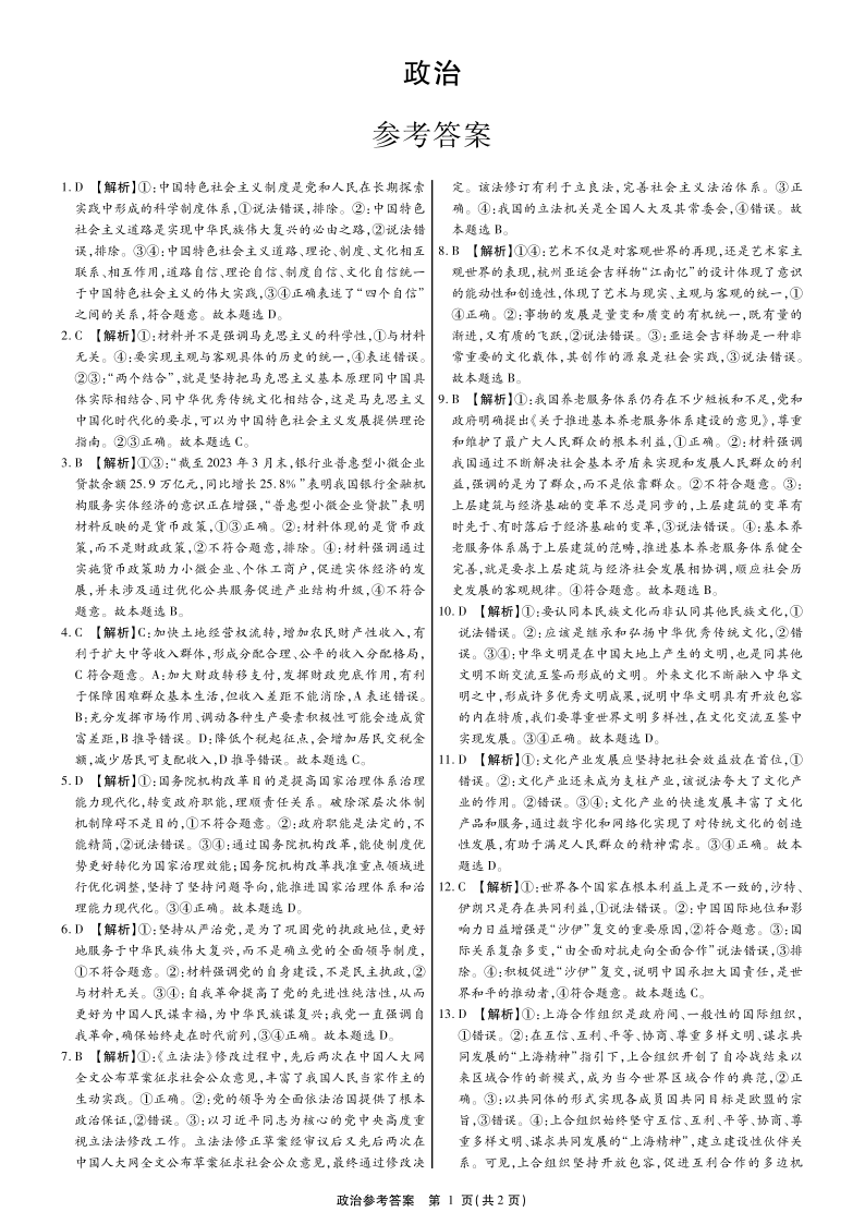 广西省2024届高中毕业班第一次摸底测试政治答案