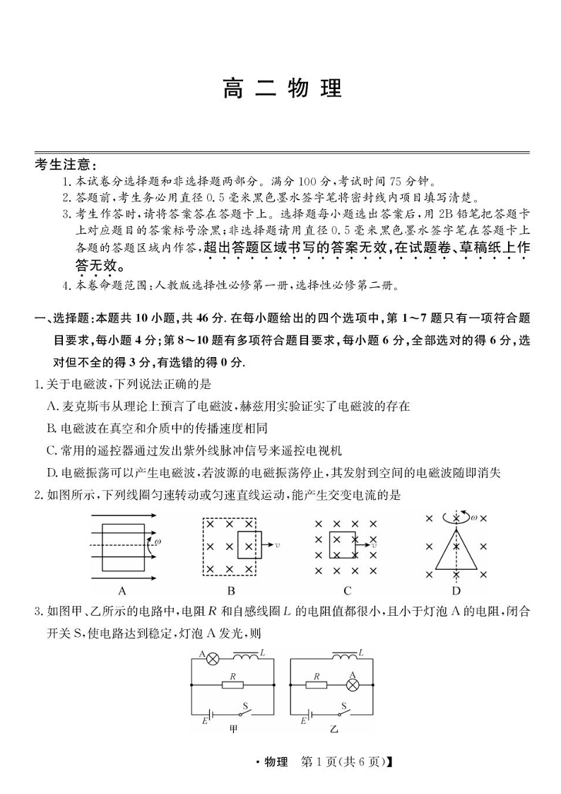 高二物理+答案--青海省西宁市大通县2024-2025学年高二下学期期末联考
