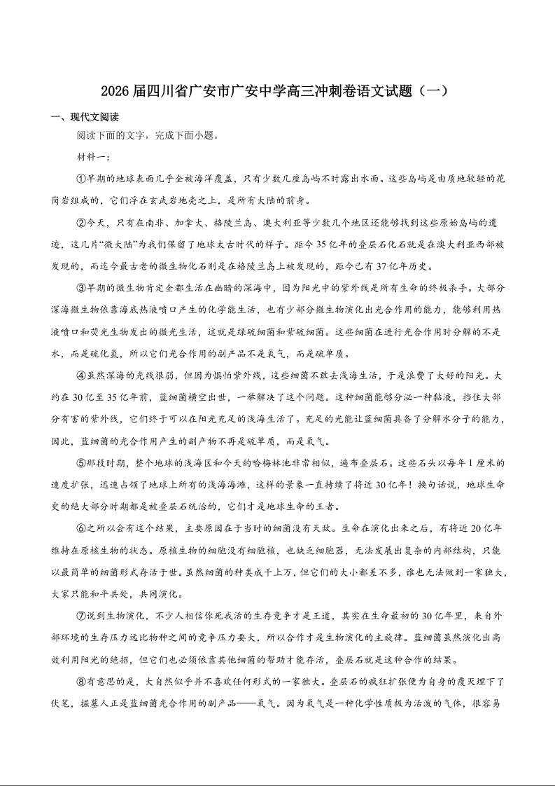 高三语文+答案--四川省广安中学2026届高三上学期冲刺月测(一)