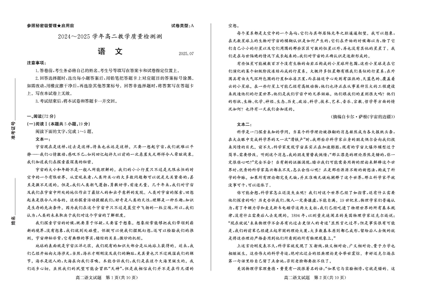 高二语文+答案--山东省枣庄市2024-2025学年高二下学期期末考试