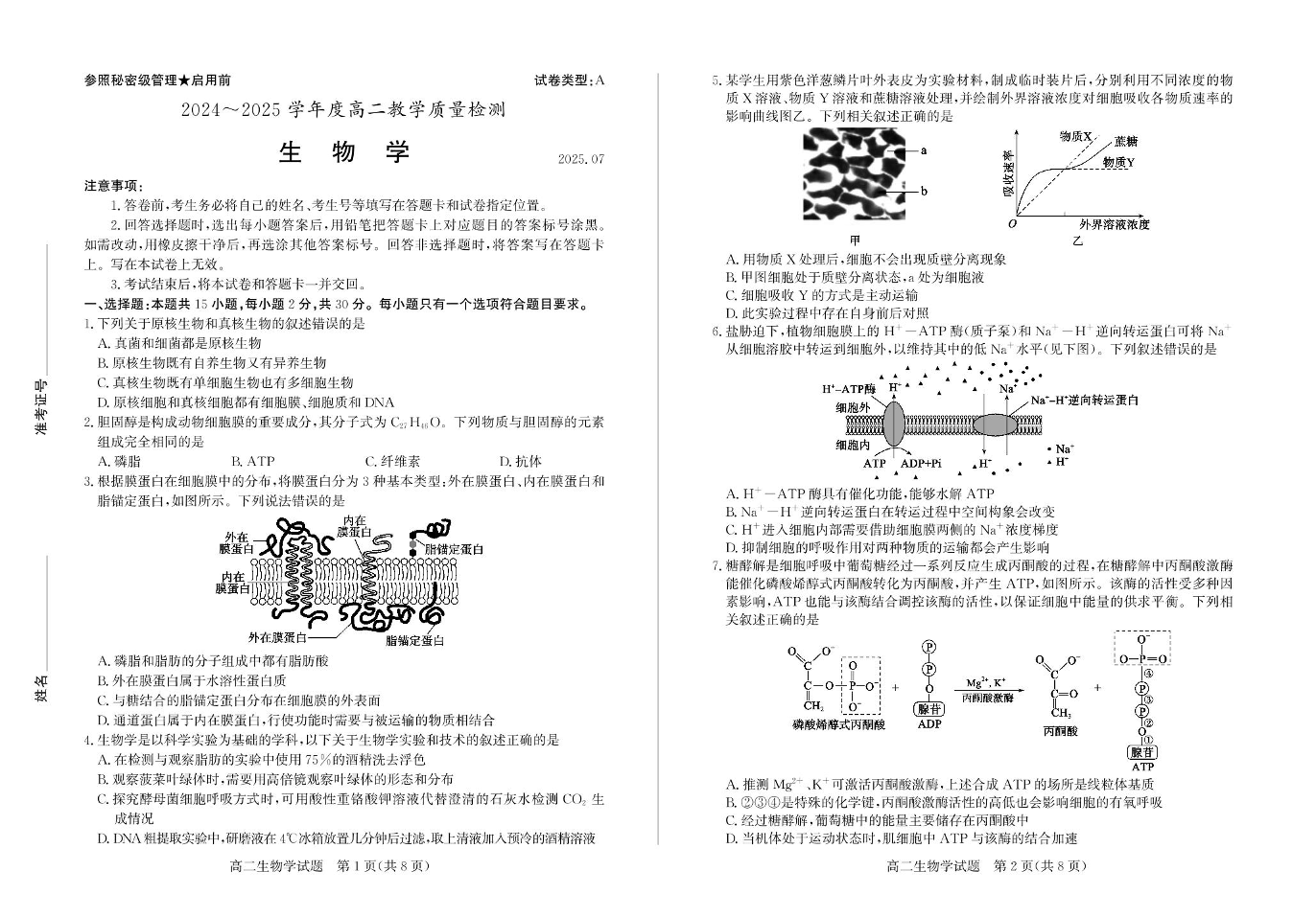 高二生物+答案--山东省枣庄市2024-2025学年高二下学期期末考试