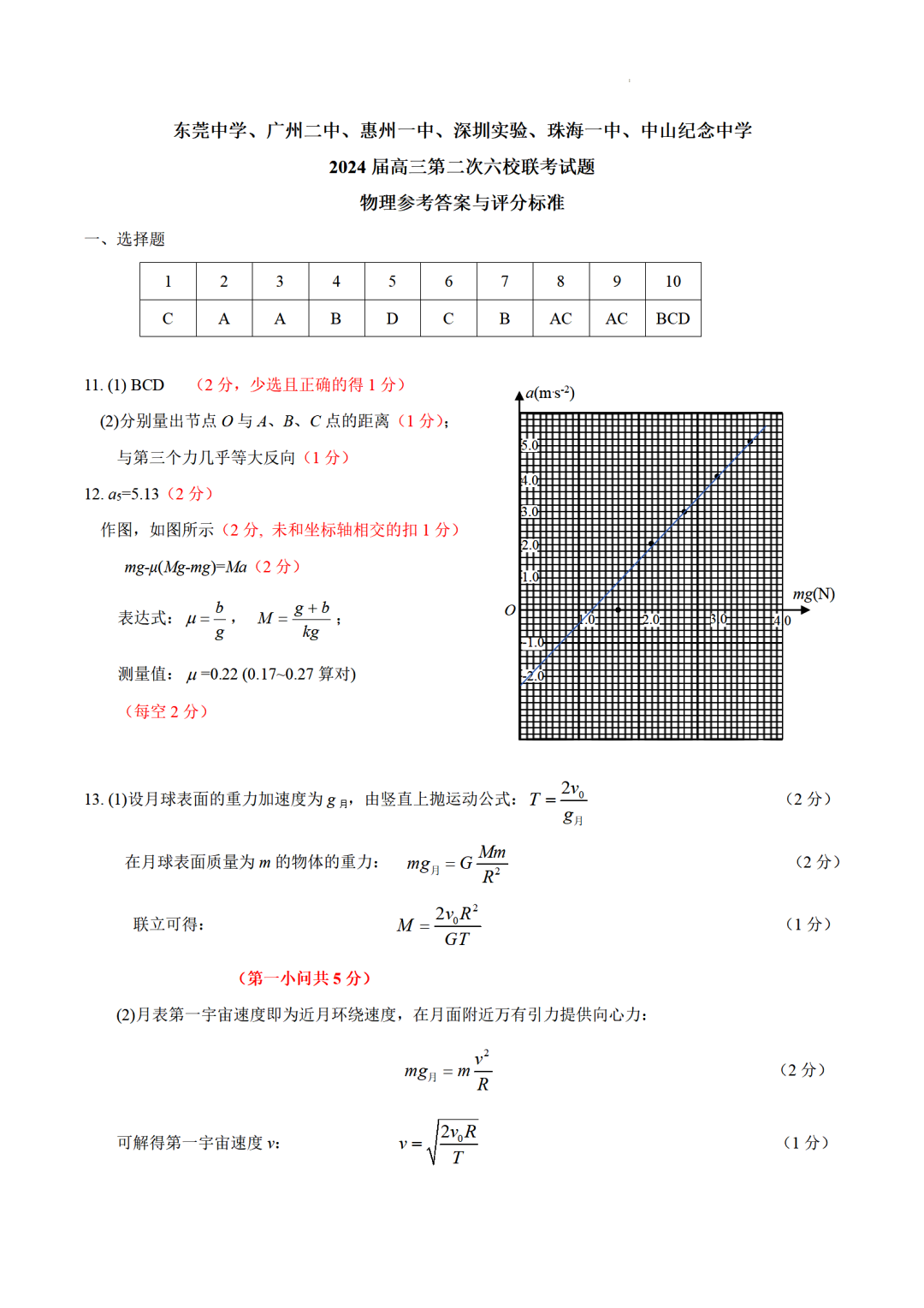 广东省2024届高三第二次六校联考物理答案