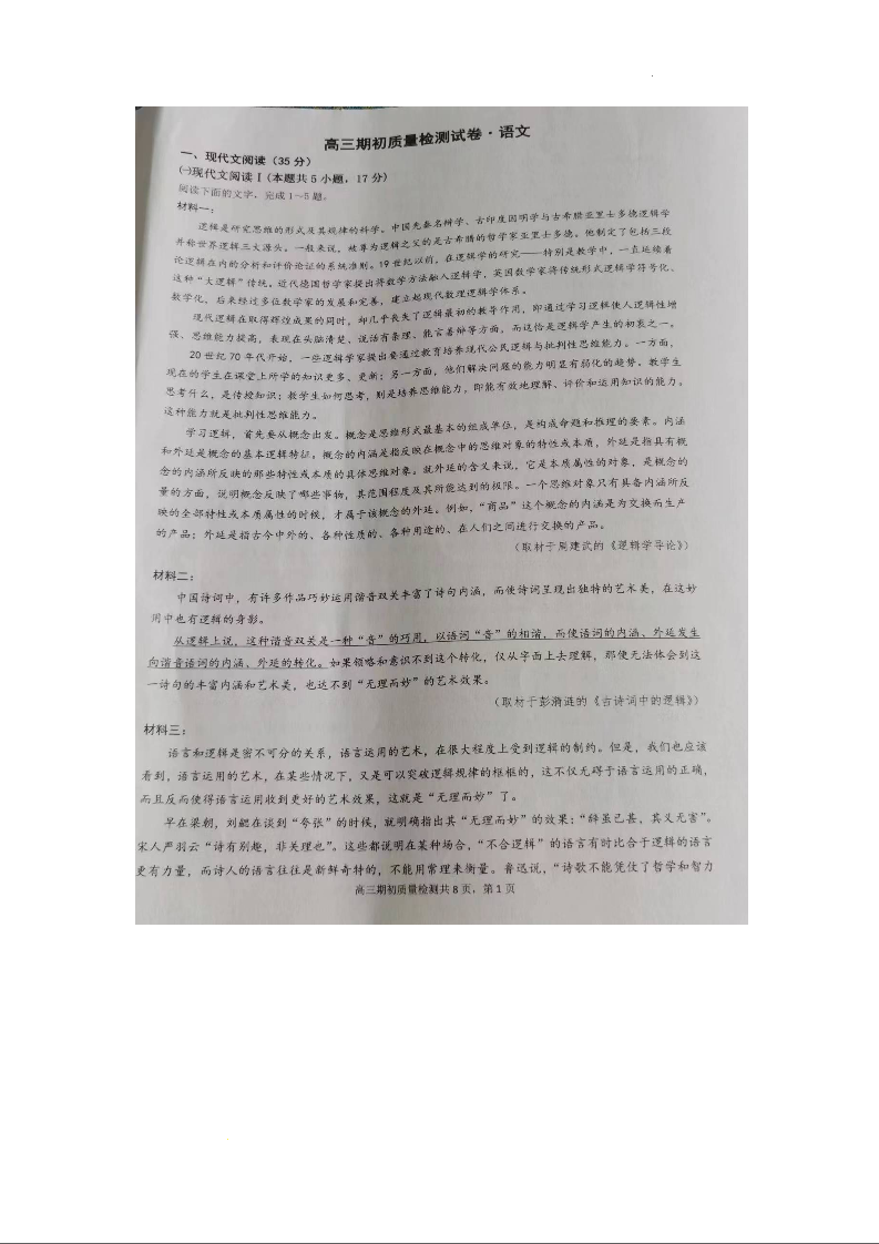 江苏省镇江地区2024届高三上学期期初考试语文