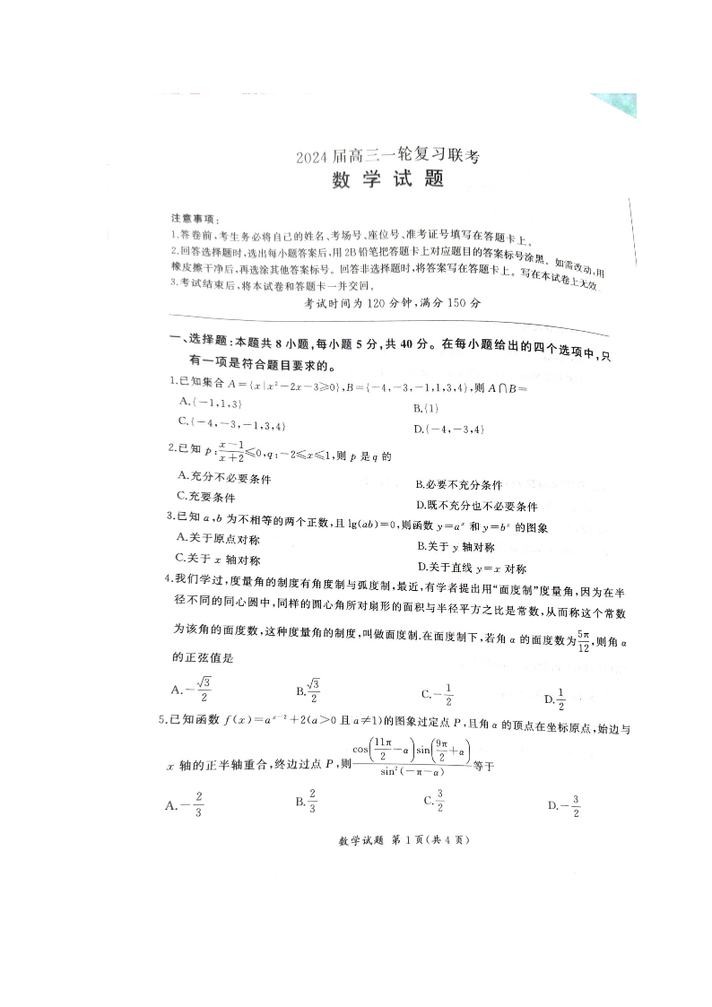 江西省百师联盟2024届高三上学期一轮复习联考试题数学+答案