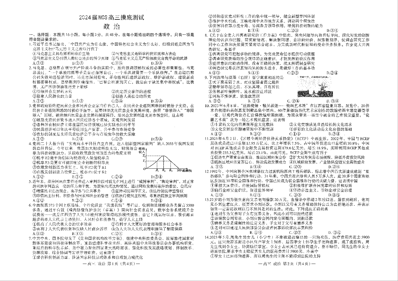 江西省南昌市2024届高三零诊政治